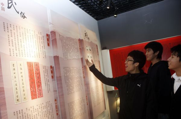 资料图:上海甘泉外国语中学的韩国留学生(左)在“读懂中国”文化体验馆内用中文朗读文学作品。新华社记者张明摄