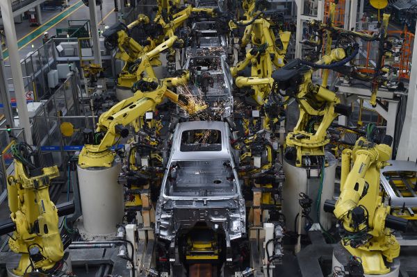 资料图:吉利汽车宁波北仑春晓生产基地的焊装车间。新华社记者 黄宗治 摄