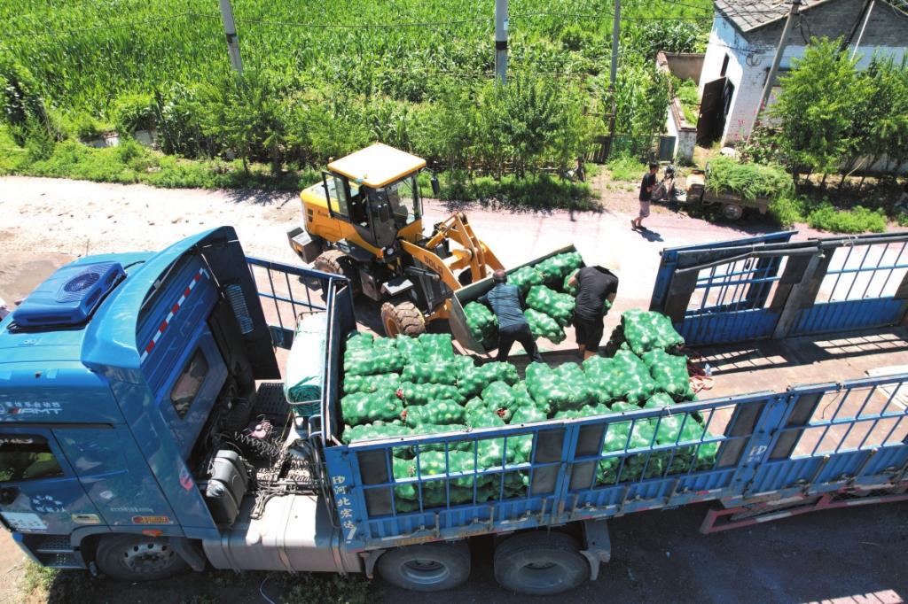 来自山东省潍坊市昌乐县沃土优品生态农业有限公司的采购经理赵延勇带着一帮人忙着挑选、装车。他介绍说:“当下正是产出高品质贝贝南瓜的最佳时节,镇安寨村的贝贝南瓜各项指标均符合公司收购要求,并且数量也能满足收购需求。”