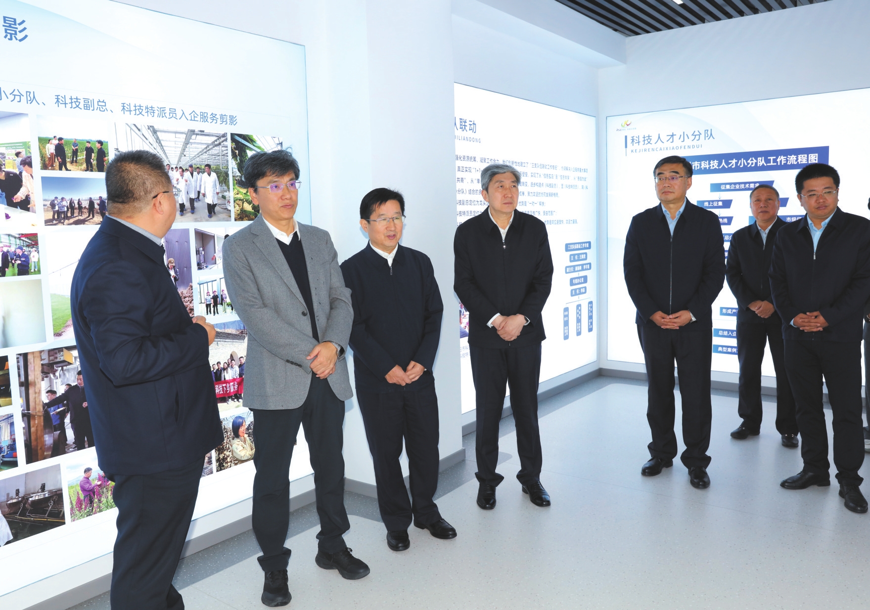 在忻州科创驿站,朱晓东、白培康等一行详细了解科研创新成果和转化应用情况。忻州科创驿站依托入驻机构人才资源,对标忻州全市重点产业,组建科技人才小分队,与科技副总、科技特派员协同,打造点、面、网相结合的创新服务体系,推动科研成果找到转化落地的应用场景,人才得到施展才华的广阔舞台。大家对忻州科创驿站因地制宜打破高校成果转化“落地难”与企业发展“技术荒”瓶颈,破解科研应用“人才荒”的实际成效表示肯定。在忻州科创驿站内,由山西工程技术学院和太原科技大学组建的山工科技忻州创新研究院、重型机械装备省部共建协同创新中心等机构的科技成果,与忻州高端锻造、废弃资源综合利用、煤机装备等产业发展和生态环保事业紧密关联,大家对科研成果与地方产业发展实际的精准嫁接表示欣慰。