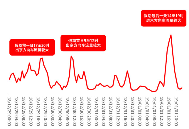 12月29日、30日出京高峰期间,京藏高速、京承高速、京新高速、京港澳高速等部分路段车流集中,特别是京藏高速、京新高速交通压力将较往年有所增加。