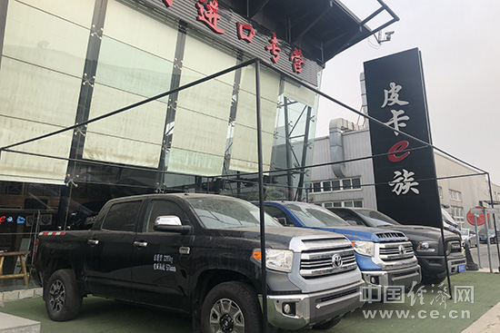 除此之外,记者在亚运村汽车交易市场还看到了一家销售丰田、福特等进口品牌的皮卡销售店。那么进口皮卡的销售是否也同样火爆呢?销售顾问吴先生在接受采访时坦言,进口皮卡在北京的销量从去年底到现在并没有暴增的迹象,该店每月销量保持在20辆左右,每台售价在40-50万元之间。因为用户定位不同,购买进口皮卡的车主一般都是家里有多辆车,购买用途主要是自驾出游。