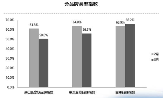 整体来看,3月集客量、成交情况以及日均销量等主要指标均有好转迹象,然而这只是相对2月淡季而言。郎学红介绍,历经2018年的跌宕起伏后,经销商今年开始启动“熔断机制”,库存达到一定限额就不再增加进货量。“经销商有了严控机制,2019年全年的库存水平会比去年有所下降。”