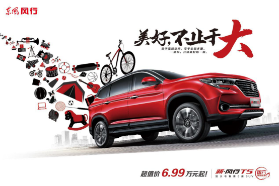 新风行T5正是在“舒适大空间”为核心诉求的牵引下,贯彻品牌的“加大号”基因,凭借着“大享空间、大享实惠、大享安心、大享便利、大享潮流”五大核心优势,为用户带来舒享的用车感受,并成为吉利远景SUV、传祺GS3等细分市场主导产品的有力竞争者。新风行T5的上市,不仅是东风风行“加大号”价值观的回归,也是东风柳汽企业实力的一次全面展现。