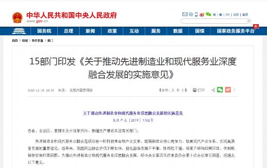 《关于推动先进制造业和现代服务业深度融合发展的实施意见》