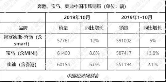 今年四季度首月,在整体车市回暖不及预期的情况下,引领高档车市场的奔驰、宝马、奥迪均交出不俗成绩,全面实现正向增长。10月,宝马、奥迪在华销量均超6万辆;奔驰则以12%的两位数增长,成为当月BBA中增速最高的品牌。