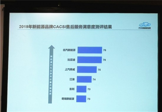 新能源汽车售后服务满意度指数第一的厂家是北汽新能源和比亚迪。整体来看还不太理想,2019年新能源车售后服务满意度75分,比燃油车低2分,当前的服务与用户的期望还有较大差距,主要问题有:服务主动性差,回访环节服务体验差;服务效率低下,主要表现是服务接待需要等待,配件不足需要等待,服务结算和提车环节流程繁琐、时间长;维修技术不过关,故障不能一次性解决。