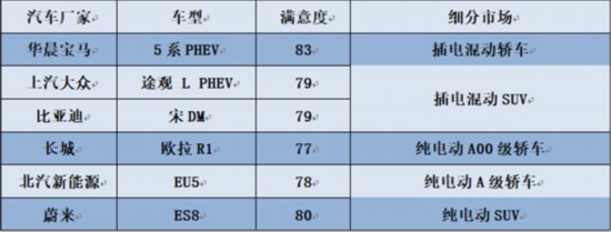 中国质量协会表示,市场竞争和质量持续提高促使我国新能源汽车用户满意度指数大幅提升,尤其是高续航里程及中高端产品受到用户青睐。测评数据显示,续航里程越高的产品,满意度也更高。主流合资品牌向插电混动汽车市场投放成熟的中高端产品,这些产品的满意度水平相对更高。