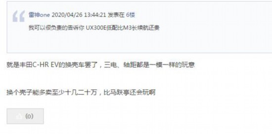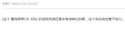 此外,雷克萨斯上月推出的首款纯电车型UX300e,新车售价超出30万元,根据补贴新政,今年7月22日后将无法享受新能源补贴。同时,从论坛上消费者的反应来看,对其似乎也不:太看好,不禁让人对雷克萨斯在华电动车“头炮”能否打响产生担忧。