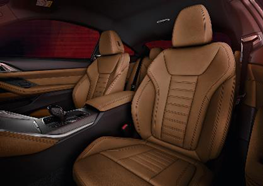 打开跑车专属的无框式车门,迎宾光毯映入眼帘,彰显匠心独运的运动豪华气息。全新BMW 4系双门轿跑车的客舱设计现代而简约,每一处细节都体现了BMW经典的“以驾驶者为中心”的设计理念。Sensatec合成皮仪表板搭配智能感应氛围灯、高级三区自动空调与带换挡拨片的M运动型多功能真皮方向盘,让越级豪华的舒适感和动感十足的驾驭感扑面而来。同时,新开发的前排M运动型座椅采用人体工程学设计,拥有卓越的包裹和支撑效果。轿跑车专属的安全带推送功能让车主于从容优雅间,彰显天性冲动的不羁个性。向驾驶员一侧倾斜的中央控制台,为前排座椅乘员营造出一种环绕式氛围。配备一体式头枕的独立式后排座椅设计独特,可轻松容纳两名乘员。降噪风挡玻璃通过精心设计,有效地将风噪转移到车身周围,为车内营造出更加静谧、舒适的驾乘体验。