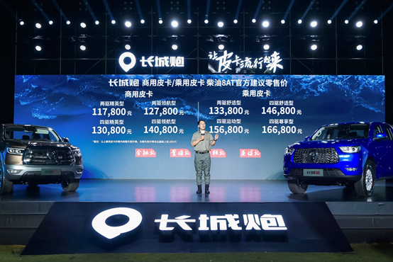 9月12日,长城炮乘用皮卡、商用皮卡柴油8AT上市。其中,长城炮商用皮卡柴油8AT售价区间为11.78万-14.08万元;乘用皮卡柴油8AT售价区间为13.38万-16.68万元。发布会上,还成立了长城炮海南商户联盟。