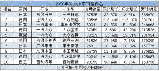 具体来看,今年以来一直保持领先的轩逸,9月销售5.75万辆,环比增长3.31%,同比大增33.87%,在创下月度销量新高的同时,进一步扩大领先优势;1-9月,轩逸累计销售36.57万辆,超过朗逸约7.4万辆。以目前的情况来看,轩逸夺得年度销量冠军已是指日可待。
