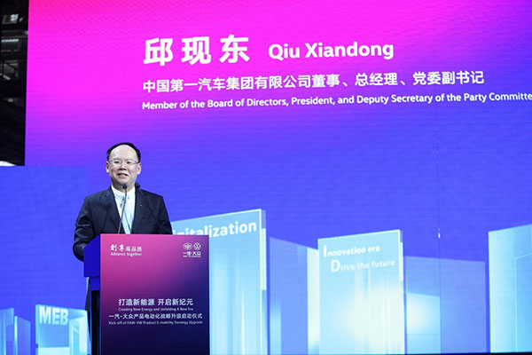 中国第一汽车集团有限公司董事、总经理、党委副书记邱现东在致辞时表示:“在新一轮科技革命推动下,汽车行业的发展格局、产业结构、商业模式正在发生深刻的颠覆性变革,大力发展新能源汽车是汽车企业转型升级的战略方向。”
