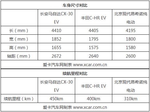 长安马自达CX-30 EV基于马自达CX-30打造,是马自达在华推出的首款纯电动车型,定位为一款小型SUV。在竞争对手方面,马自达CX-30 EV推出后将对标一汽丰田C-HR EV(|询价)、北京现代昂希诺纯电动车型。与对手相比,长安马自达CX-30 EV的轴距、续航里程方面均占有一定优势。
