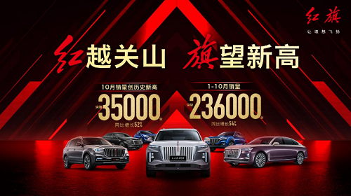 每一分对极致产品付出的努力,都将赢得客户最珍贵的选择和信任。10月,红旗H9终端销售量突破4000台,紧跟一线豪华品牌同级车型,继续扩大国产品牌豪华轿车销量领先优势;红旗E-HS9以终端销售量突破810台的成绩,创下单车型月销量纪录;红旗“双9”成为增强客户产品体验、带动新红旗产品矩阵向上突破的强大“引擎”。