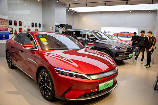 统计数据显示,2021年新能源汽车产销分别达到354.5万辆和352.1万辆,同比增长均为1.6倍。此外,新能源汽车市场占有率提升至13.4%,进一步说明新能源汽车市场已从政策驱动转向市场拉动。在终端消费日渐活跃的同时,越来越多的自主品牌凭借新能源汽车闯出了一条“销量上升、品牌向上”的新路子。图为消费者在上海一家比亚迪店内体验新车。视觉中国供图