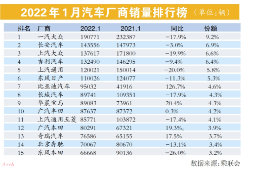 近日,乘联会公布了2022年1月全国乘用车市场分析。整体来看,1月,国内狭义乘用车销量为209.2万辆,同比下降4.4%,环比小幅下滑0.6%。乘联会指出,1月厂商库存下降11万辆,渠道库存环比下降9万辆;历年的1月是去库存的重要节点,今年1月库存去除较好。
