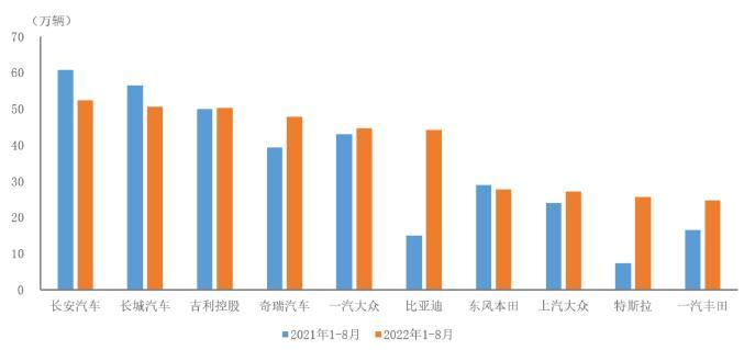 在销量排名前十位的SUV生产企业中,与上年同期相比,长安汽车、长城汽车、东风本田销量有所下降,其他企业均呈增长,其中比亚迪、特斯拉增速更为显著。(中新财经)