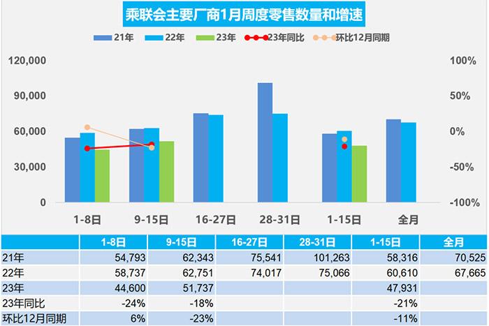 中新网1月18日电 据乘联会公众号18日消息,1月1-15日,乘用车市场零售71.9万辆,同比去年下降21%,较上月同期下降11%;全国乘用车厂商批发65.9万辆,同比去年下降20%,较上月同期下降11%。