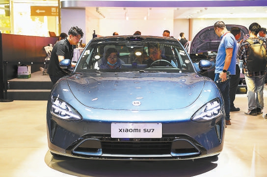 北京车企推出多款新车,小米汽车展台人气爆棚。北京晚报记者 潘之望 摄