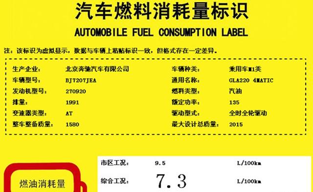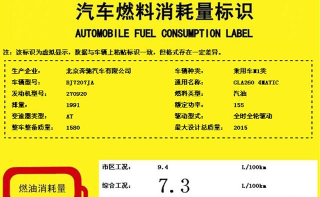国产奔驰新款GLA油耗信息