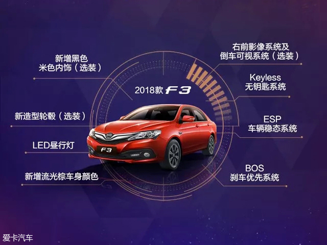 编辑点评:相比现款车型,2018款比亚迪F3的升级较为有限,不过新增的全新车身颜色及轮圈造型无疑有望被更多年轻人所接纳。