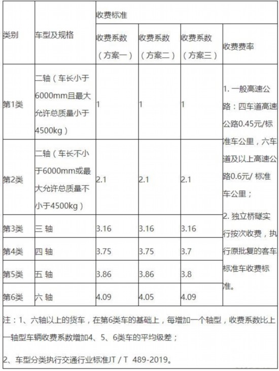 货车计费方式由计重收费改为按车型收费。以前货车计重收费,是以收费站现场称出的车货总质量为依据计收通行费,不同吨位车辆收费金额不同,“多装多收,少装少收”。改为按车型收费后,以车辆轴数为依据计收通行费,同一轴型车辆,不论装多装少,都执行同一收费标准。