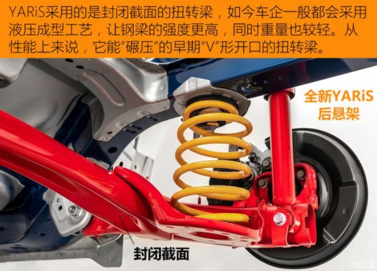对于这些尺寸小巧的车型来说,提高车内的空间利用率非常的重要,日本工程师往往非常擅长这一点。在全新YARiS(两驱版)和飞度都选择了前麦弗逊+后扭转梁的悬架结构,这是综合性能和空间因素后最合理的设计方案。