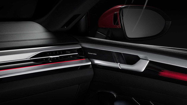 配置部分,我们可以在车内看到Harman/Kardon音响系统,以及新的手机无线充电功能,还有道路交通标志识别和车道保持辅助功能,估计新车会拥有L2级自动驾驶辅助能力。