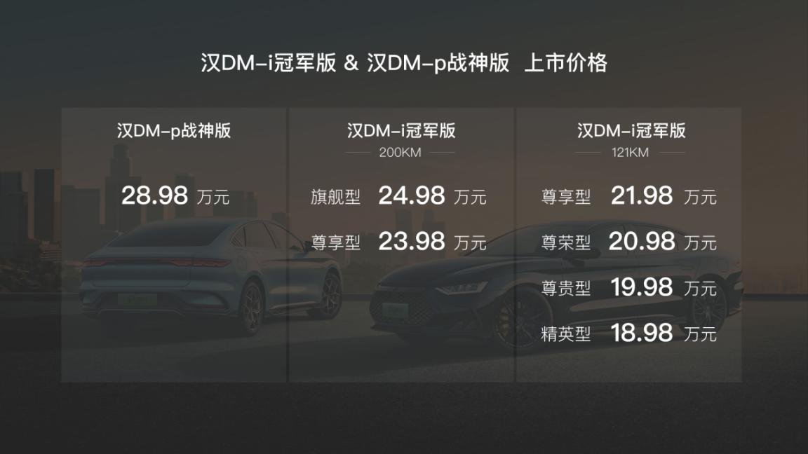 汉DM-i冠军版、汉DM-p战神版上市,售价18.98~28.98万元