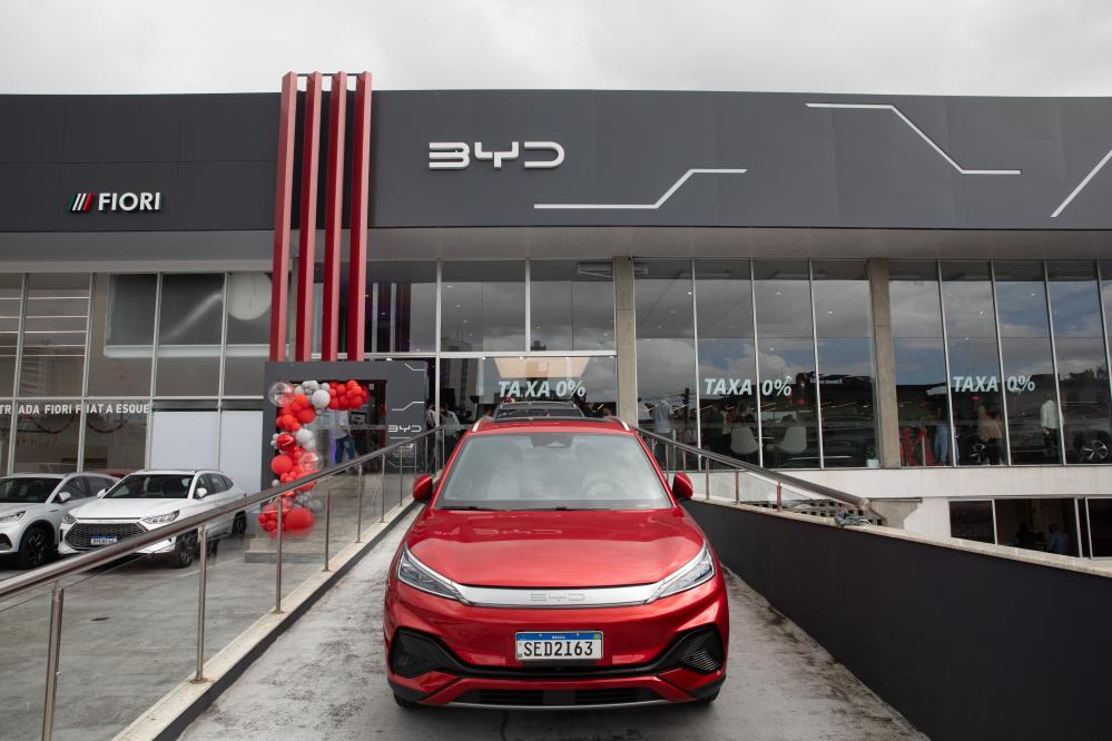 这是在巴西巴伊亚州拍摄的一家比亚迪纯电动汽车销售店铺。新华社记者 王天聪 摄