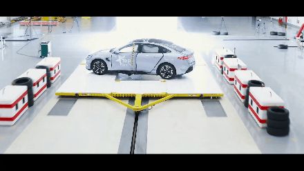 本次试验采用了双面侧柱碰的形式,在单次侧柱碰的基础上极大的增加了试验难度,模拟更极端的连环撞击工况,对于新能源车型的考验难上加难。