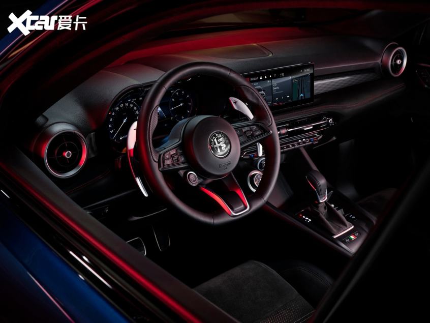 内饰同样延续了阿尔法·罗密欧家族的经典设计,启动按钮设计在方向盘上,悬浮式中控屏尺寸为10.25英寸,并支持无线CarPlay和百度CarLife功能。