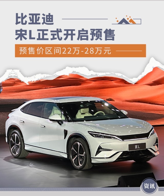 网通社快讯 10月31日晚,比亚迪全新宋L正式开启预售,共推出5款车型,预售价区间22万-28万元。新车定位B级猎装SUV,基于e平台3.0打造,采用王朝家族最新设计语言,配备无框式车门及可升降车尾扰流板组件,并搭载CTB电池车身一体化技术,智能电四驱、云辇C等技术。预售期间,全新宋L还为下订用户提供了多重订购大礼。