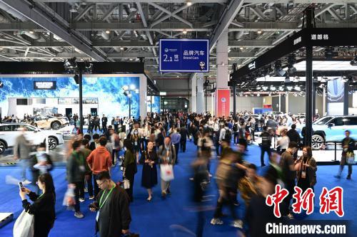 11月6日,观众在进博会汽车展区参观。第六届中国国际进口博览会于11月5日至10日在上海举行。中新社记者 田雨昊 摄