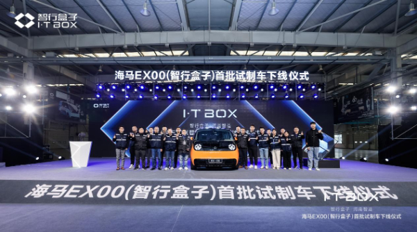 11月15日,海马EX00(智行盒子)首批试制车下线仪式在郑州经开区海马汽车第三智能工厂成功举行,来自当地及相关部门的负责同志,智行盒子股东代表、合作伙伴代表共150余人共同见证海马EX00(智行盒子)首批试制车下线。