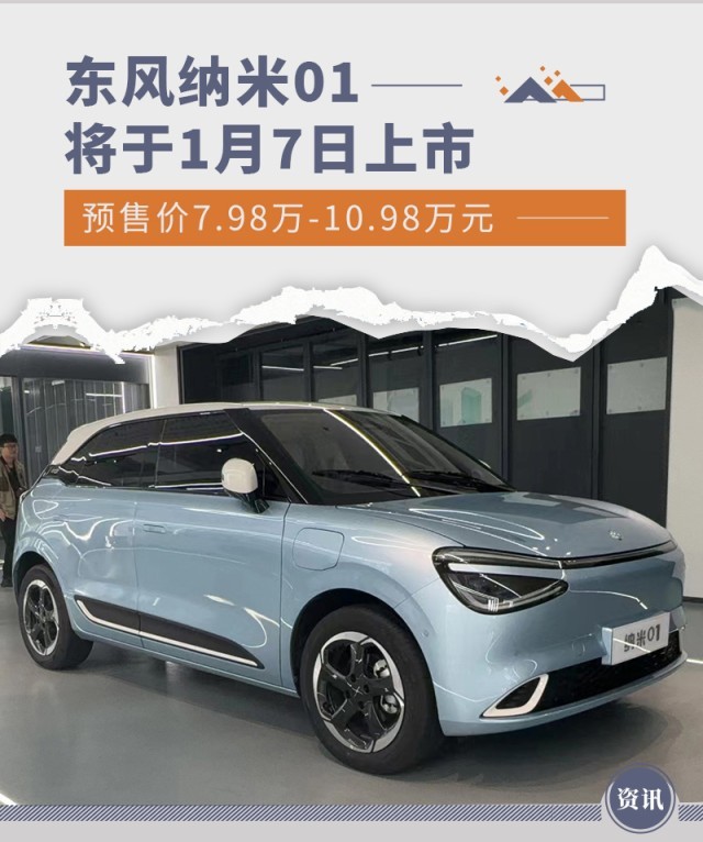 网通社快讯 东风纳米01将于1月7日正式上市。此前,该车已在2023广州车展开启预售,推出330km、430km两种续航版本,预售价区间7.98万-10.98万元。作为东风汽车旗下全新电动车品牌东风纳米的首款车型,新车基于全新的新能源架构平台打造,定位纯电动小型车。与此同时,该车采用较为圆润可爱的外观设计风格,并搭载一台最大功率70千瓦的输出电机。