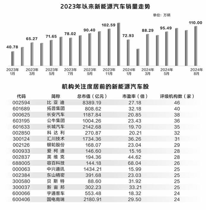 以旧换新政策加码后,新能源汽车前景持续向好,多家机构看好未来销量进一步增长。