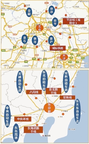 今年5月15日,全国铁路迎来了近10年最大范围列车运行图调整。北京铁路局旅客列车开行总数达到610对,创历史纪录。为打造京津冀区域半小时和1小时交通圈,新增石家庄、定州东、保定东至北京西高铁列车。而据专家介绍,周围中小城市进入京津冀城际铁路网的标准是,从任何节点城市出发到北京、天津,通勤时间都在1小时左右。石家庄、保定、廊坊、沧州、邯郸等城市已经接入其中。与此同时,北京地铁确定直通河北燕郊、固安、涿州。其中,6号线通至河北燕郊、大兴线通至河北固安、房山线通至河北涿州。