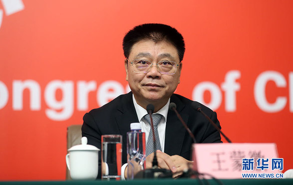 10月22日,十九大新闻中心举办记者招待会,邀请教育部、民政部、人力资源社会保障部、住房城乡建设部、国家卫生计生委相关负责人介绍满足人民新期待,保障改善民生有关情况,并回答记者提问。图为住房城乡建设部党组书记、部长王蒙徽。新华网 郝广鹏摄