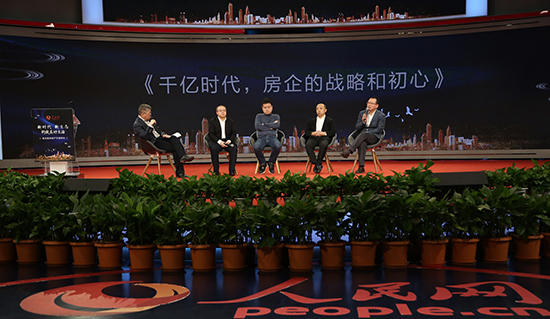 圆桌对话:陈志、张鹏、袁春、王军、周兴(由左至右)共论“千亿时代,房企的战略和初心”。