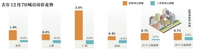 1月16日,国家统计局发布的70城市房价数据显示,去年12月一线城市新建商品住宅销售价格环比涨幅扩大。一线城市新房价格环比逆势而上主要源于广州表现抢眼,广州以3%的环比涨幅领跑全国。