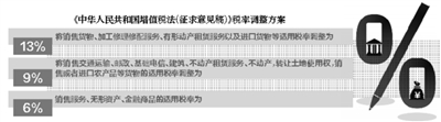 财政部、国家税务总局昨天发布《中华人民共和国增值税法(征求意见稿)》(以下简称《征求意见稿》),将不动产租赁服务、不动产,转让土地使用权的适用税率调整为9%。
