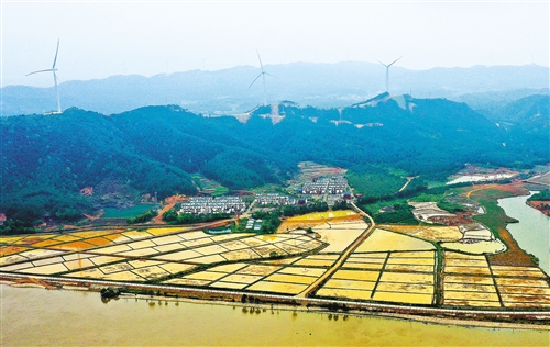 3月30日,江西省吉水县水田乡峡江水利枢纽工程抬田区,翻耕好的农田整齐排列待插秧。 廖 敏摄(中经视觉)