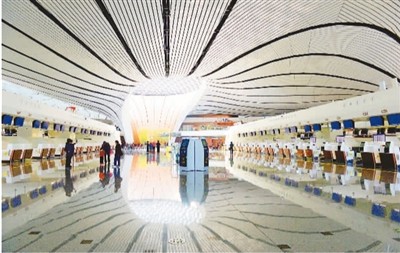 作为一个国际化的大型机场,北京大兴国际机场在多项环保节能技术上都处于世界领先水平。胡庆明摄(人民图片)
