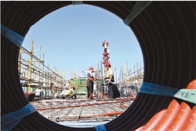 江苏南京,工人在百水保障性住房一期项目工地加紧施工,该保障性住房以三星级绿色建筑为目标。 赵启瑞摄(人民视觉)
