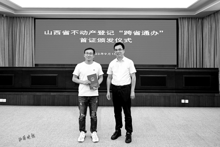9月15日,山西省不动产登记“跨省通办”启动暨晋津首证颁发仪式举行,山西省自然资源厅和天津市规划和自然资源局签订《晋津不动产登记“跨省通办”合作框架协议书》,并发出首本“跨省通办”不动产权证书。此举标志着晋津两地不动产登记“跨省通办”正式开启,两地的企业、群众在本地即可通过“跨省通办”窗口办理不动产登记业务。