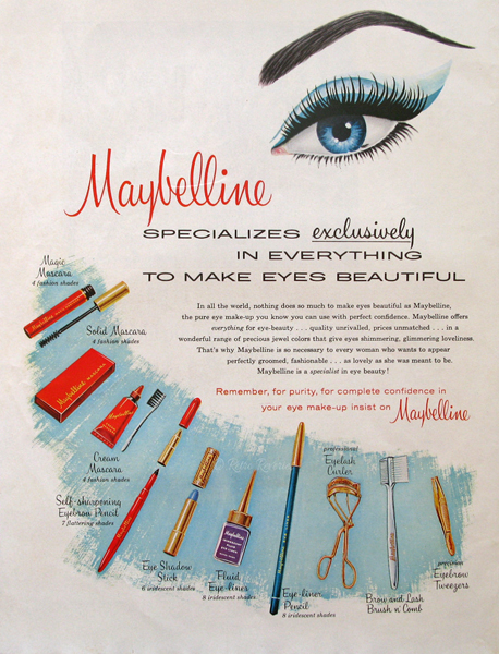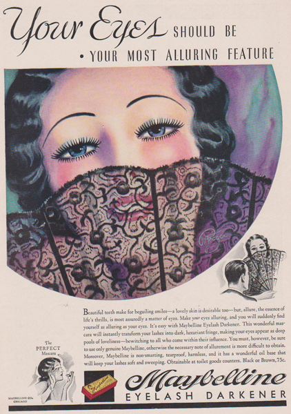 1913年的时候(不要怀疑时间,就是那么早),有个叫做玛贝尔(Mabel)的姑娘单恋上一个帅小伙儿,为了让睫毛好看好看一点儿,这姑娘就用凡士林加上煤灰来为自己的睫毛上了点儿妆。而这个土方子,还是她从某时尚杂志上看来的。