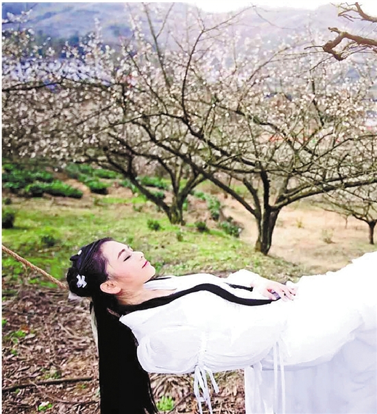 浙江在线03月22日讯(钱江晚报通讯员陈玉婷 记者苗丽娜)盛开的香雪梅海间,一个女孩白衣胜雪。或舞剑潇洒不拘,行云流水;或轻曳秋千,灵动轻盈;或侧颜微笑,娇美动人。