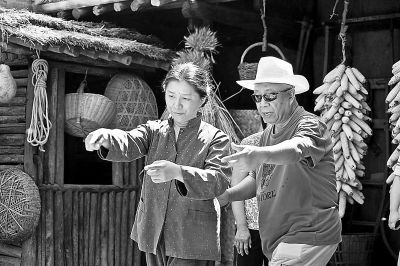 图为吴天明(右)生前指导演员拍戏。有人认为吴天明性情刚烈,不会赞同别人替自己跪求排片。